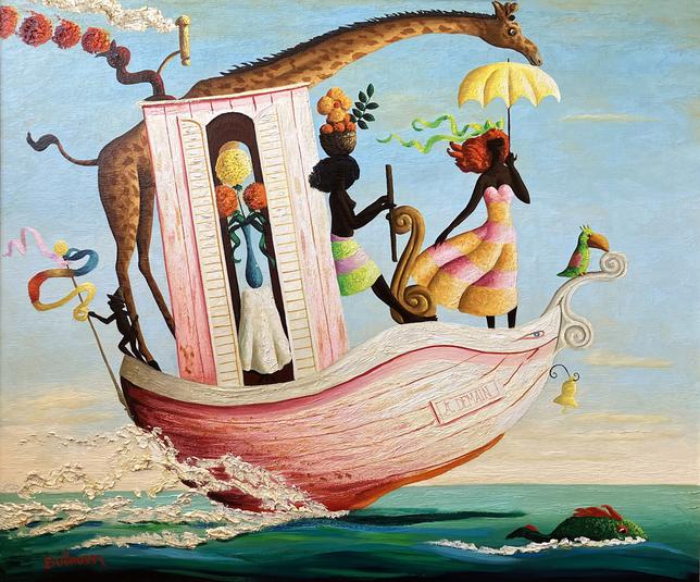 La Barque A Demain, signed, oil on canvas, 30 x 36 inches, also signed, titled, and dated 1969 on the reverse.