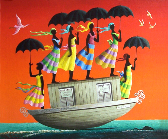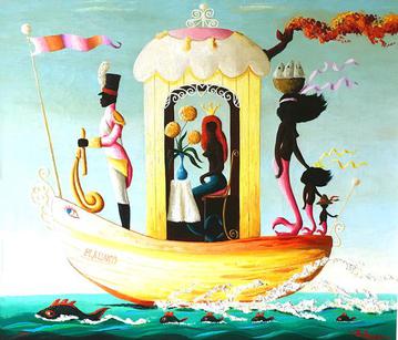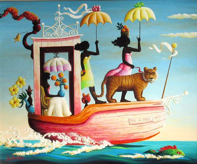 La Barque Plaisant, 1971, signed, oil on canvas, 24 x 28 inches.