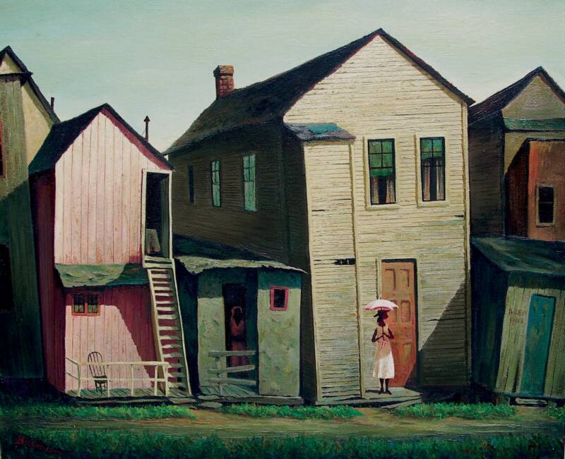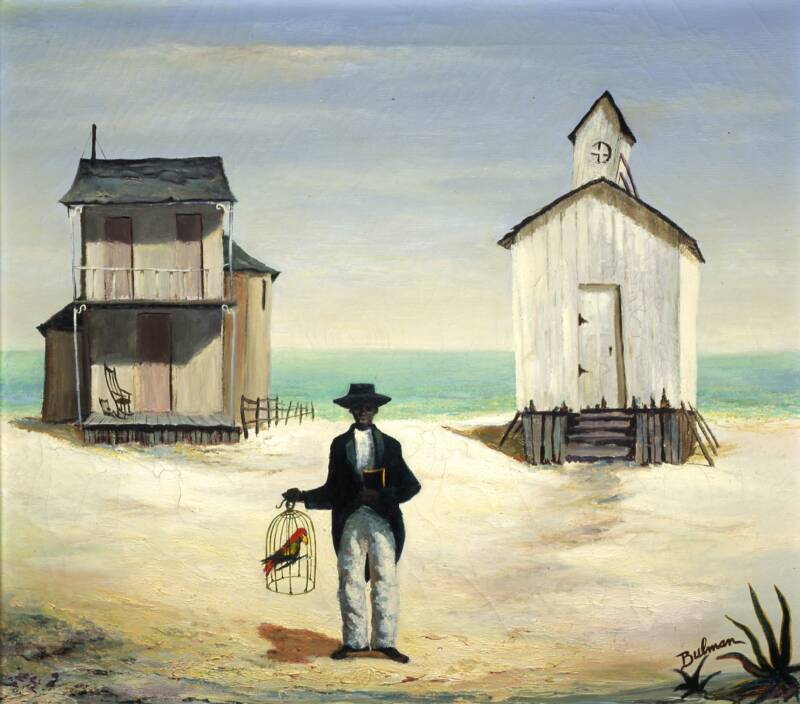In the late 1940s and early 1950s, Orville Bulman was a regionalist and social realist painter. Besides his well known Haitian and Bahamian views, his early paintings reflected Midwestern,