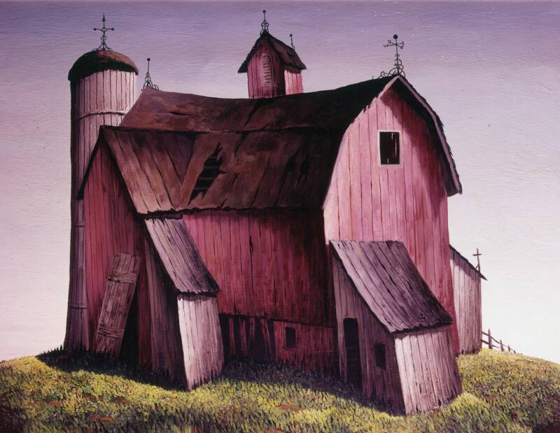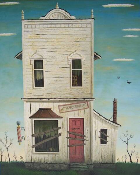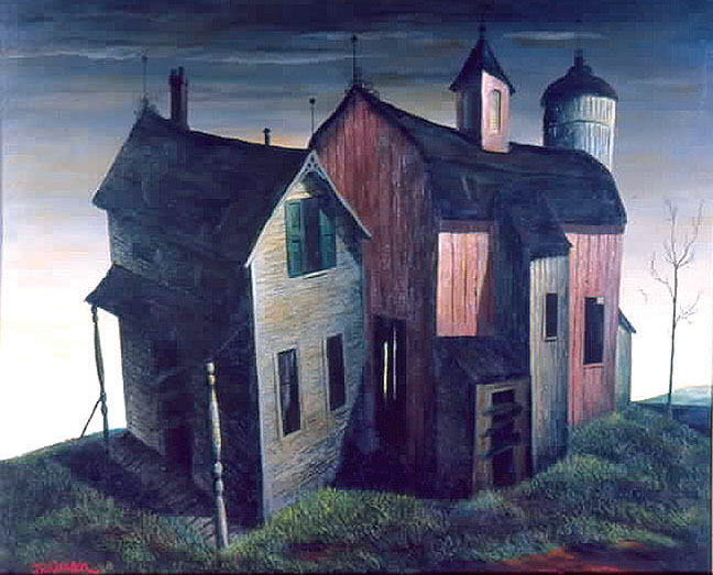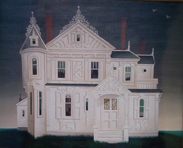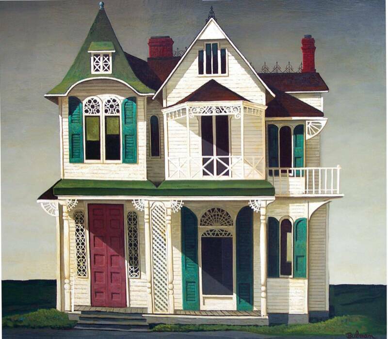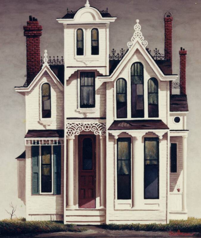 In striking contrast to the warm, colorful Caribbean fantasies, Bulman created many scenes of cold, sometimes distressed, and often Victorian edifices of Grand Rapids and northern Michigan.