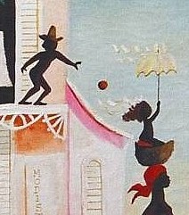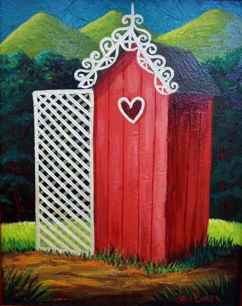 5. Bulman's Outhouse paintings were of real outhouses, not his opinion of general Haitian architecture. This is yet another glaring inaccuracy in that old catalogue. On the contrary, Bulman admired Haitian architecture very much, according to personal letters he wrote to Jean. He painted numerous, stunning depictions of the Haitian buildings, each different from the other, and described them as "almost like little palaces," and "having..enchanting originality." Incidentally, the Duchess of Windsor owned one of his Outhouse paintings (see an example at right).Again, his outhouse paintings were of outhouses, nothing else.